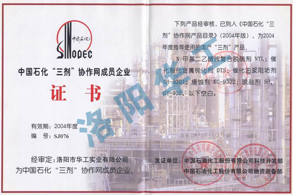 中石化“三劑”協(xié)作網(wǎng)證書(shū)
